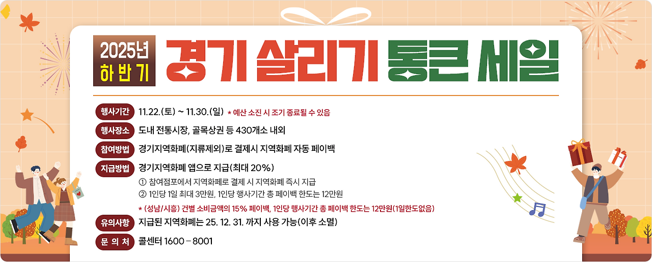 이번 2025 하반기 경기통큰세일은 경기지역화폐 결제 시 최대 30% 페이백까지 받을 수 있어