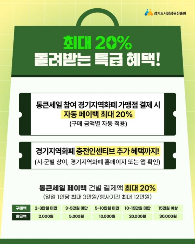 | 경기통큰세일 페이백 | 최대 30% (기본 20% + 인센티브 10%) |
