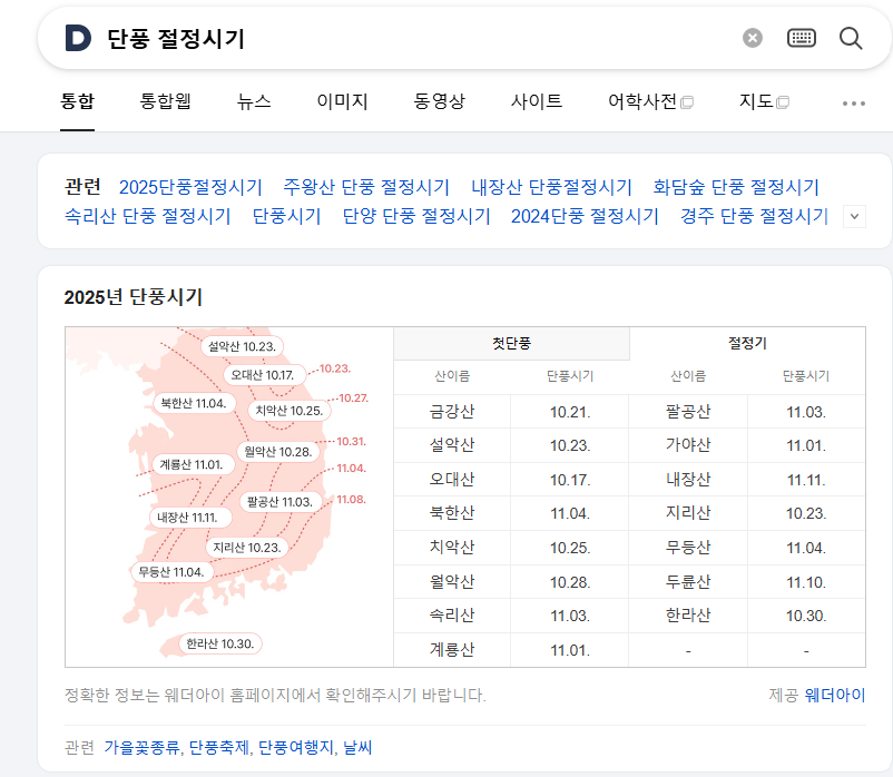 전국 단풍 절정시기 – Daum 검색