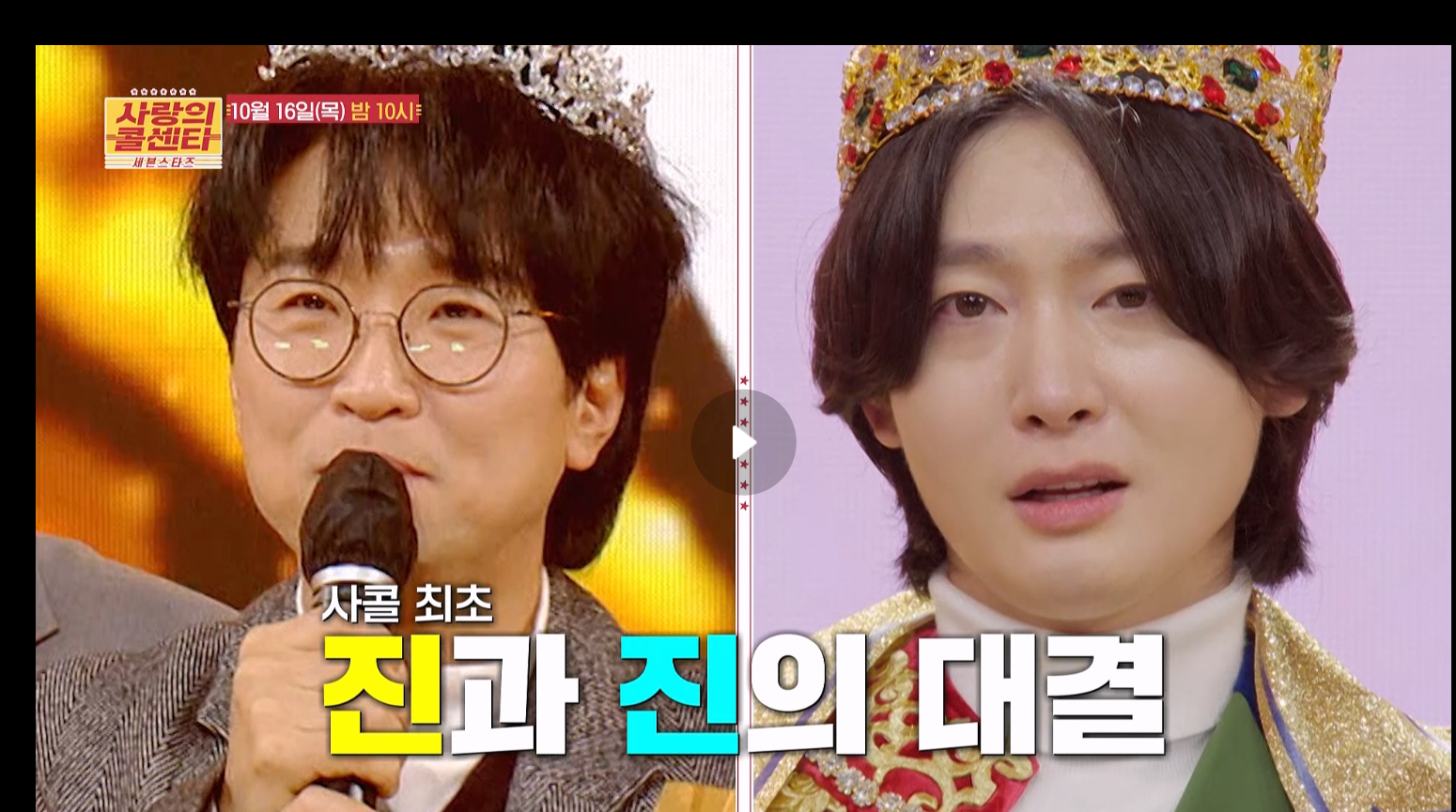 10월 16일에 방송되는 사랑의 콜센터 세븐스타즈에서는 제1대 국민가수 박창근과 미스터트롯3 진 김용빈의 대결이 진행됩니다.