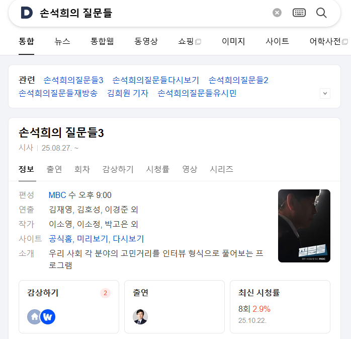 Daum 검색에서 손석희의 질문들에 대한 최신정보를 찾아보세요.