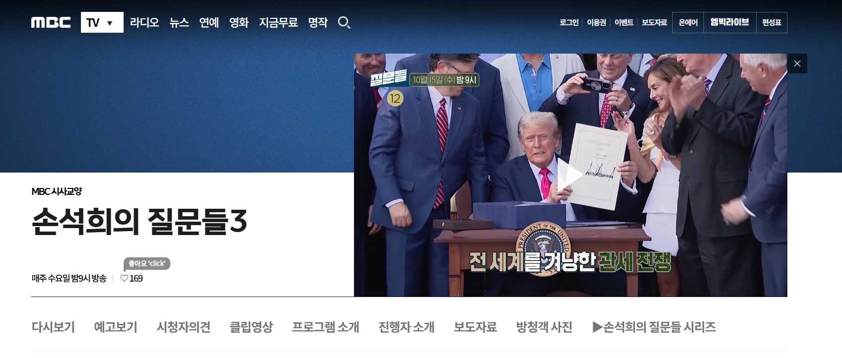 - MBC 홈페이지 접속 → “프로그램” → 손석희의 질문들 검색