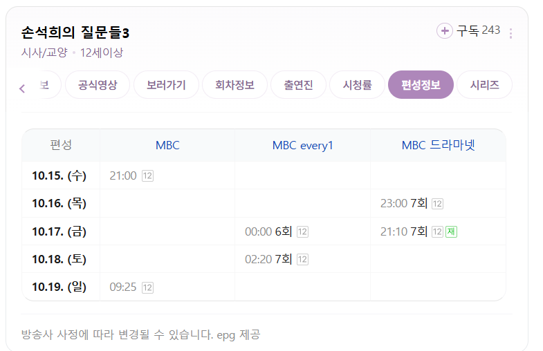 재방송 편성은 지역별·플랫폼별로 상이하므로,