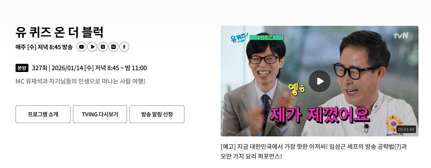 ✔ 유퀴즈 재방송 시청 방법