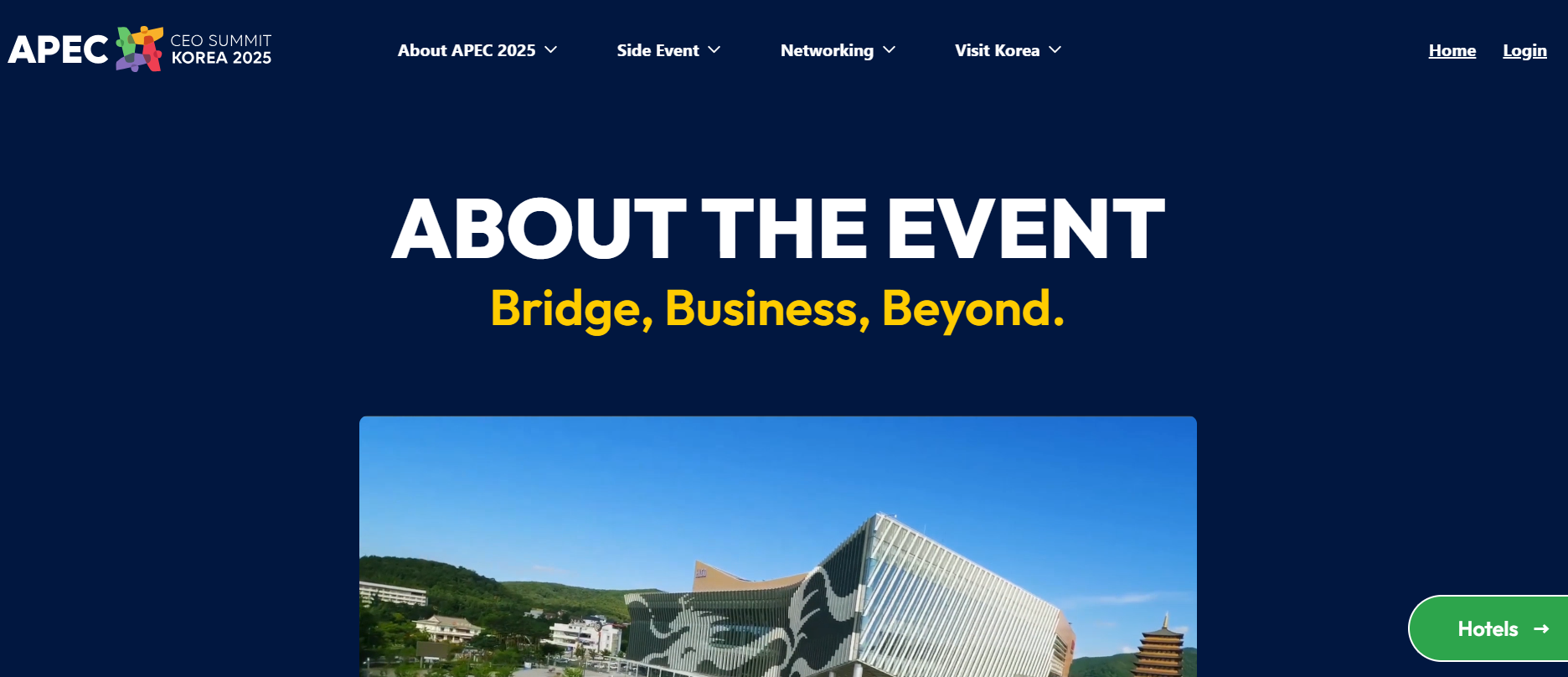 Bridge, Business, Beyond. The APEC CEO Summit Korea 2025 will be held in Gyeongju, Korea. As one of the most prestigious multilateral gatherings, the Summit will bring together global CEOs, distinguished experts, and senior economic leaders under the theme