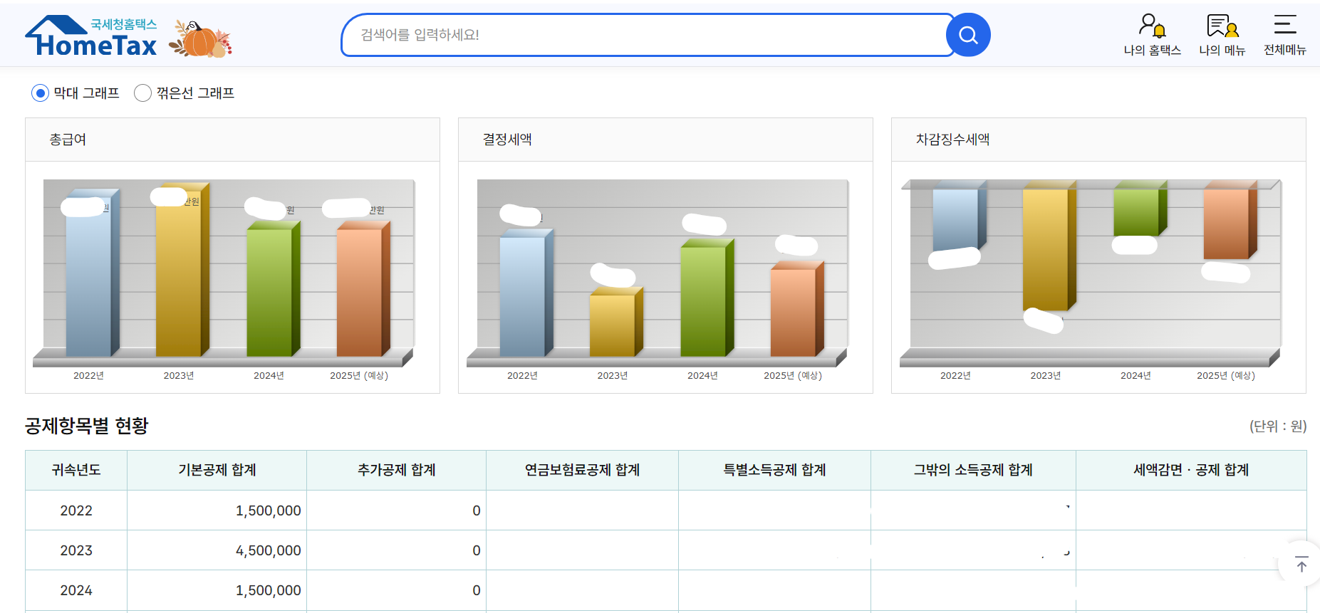 최근 3년 간 급여·세금 변화를 그래프로 한눈에 비교 가능