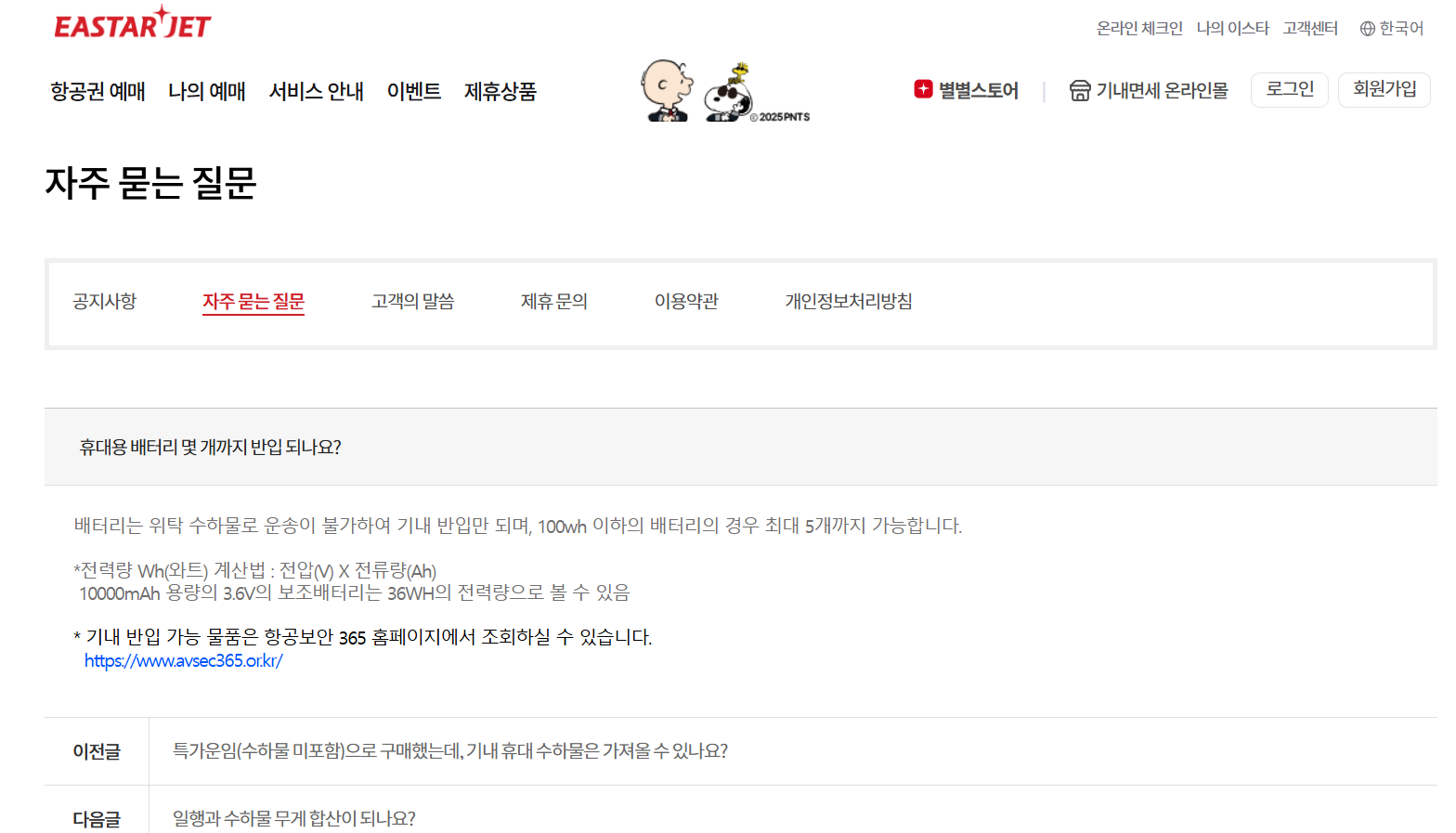 Q1. 이스타 항공 기내 수화물로 보조 배터리를 가져갈 수 있나요?