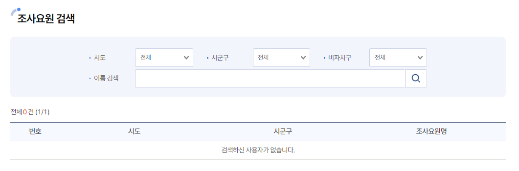 - 공식 홈페이지에서 조사원 이름을 검색해 신원 확인 가능.