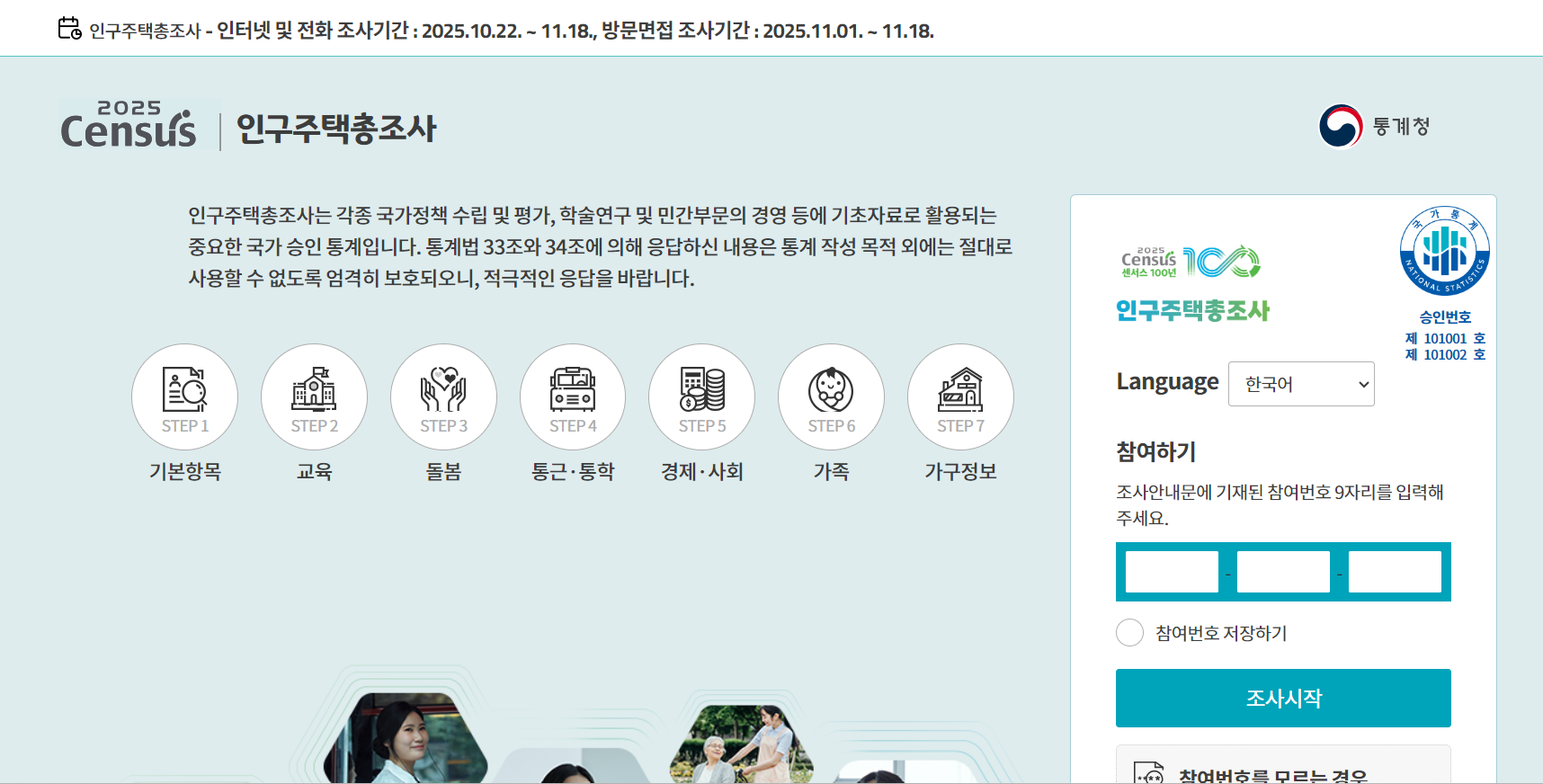 2025년 10월 22일부터 시작된 인구주택 총조사는