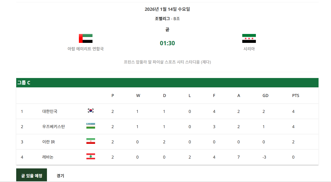 - 👉 1월 13일 : 대한민국 vs 우즈베키스탄