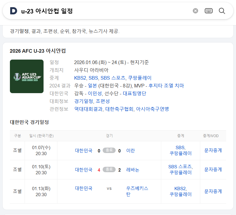 해외에서 열리는 대회이지만, 다행히 u-23 아시안컵 중계는 국내에서도 안정적으로 시청할 수 있습니다.